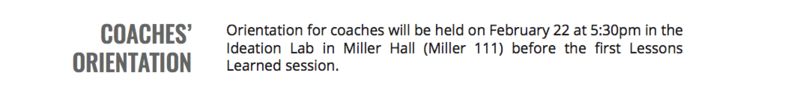Please RSVP for the sessions you may be able to attend by filling out the brief coach availability form here:RSVP for Coaching Sessions