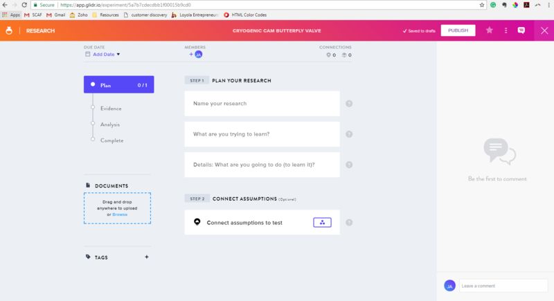 The Loyola Lean Launchpad class (LLP) uses a software package called Glidr to track our innovation and commercialization progress. the platform is used to: