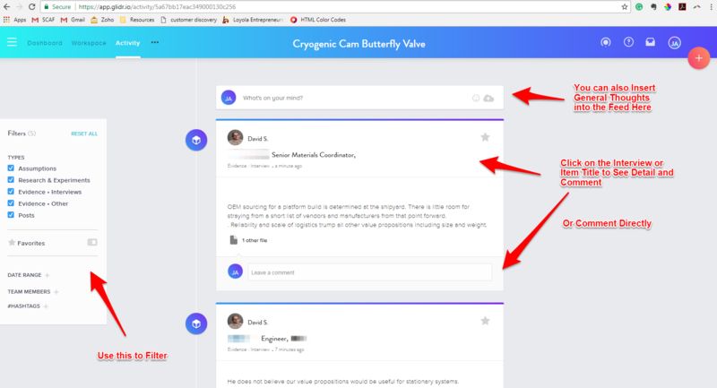Instructors mentors and coaches can also use GLIDR to provide real time feedback to the team on interviews conducted and the business model being developed. This system replaces Launchpad Central (LPC) and is a more fully featured version of that system that was used heavily in the past.