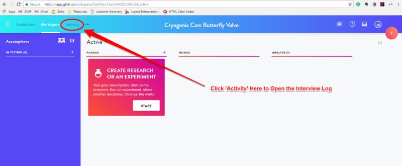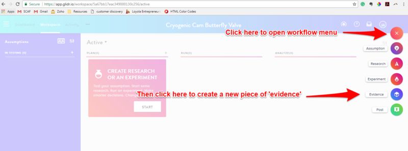 There is also a research design section accessed from the work flow menu (big '+' on the right hand side of the screen) that allows you to organize and plan your testing in advance. This is very useful for logging the 'what we thought' at the beginning of a discovery or validation effort and making sure that we close the loop by tying our validation efforts back to making decisions about assumptions.